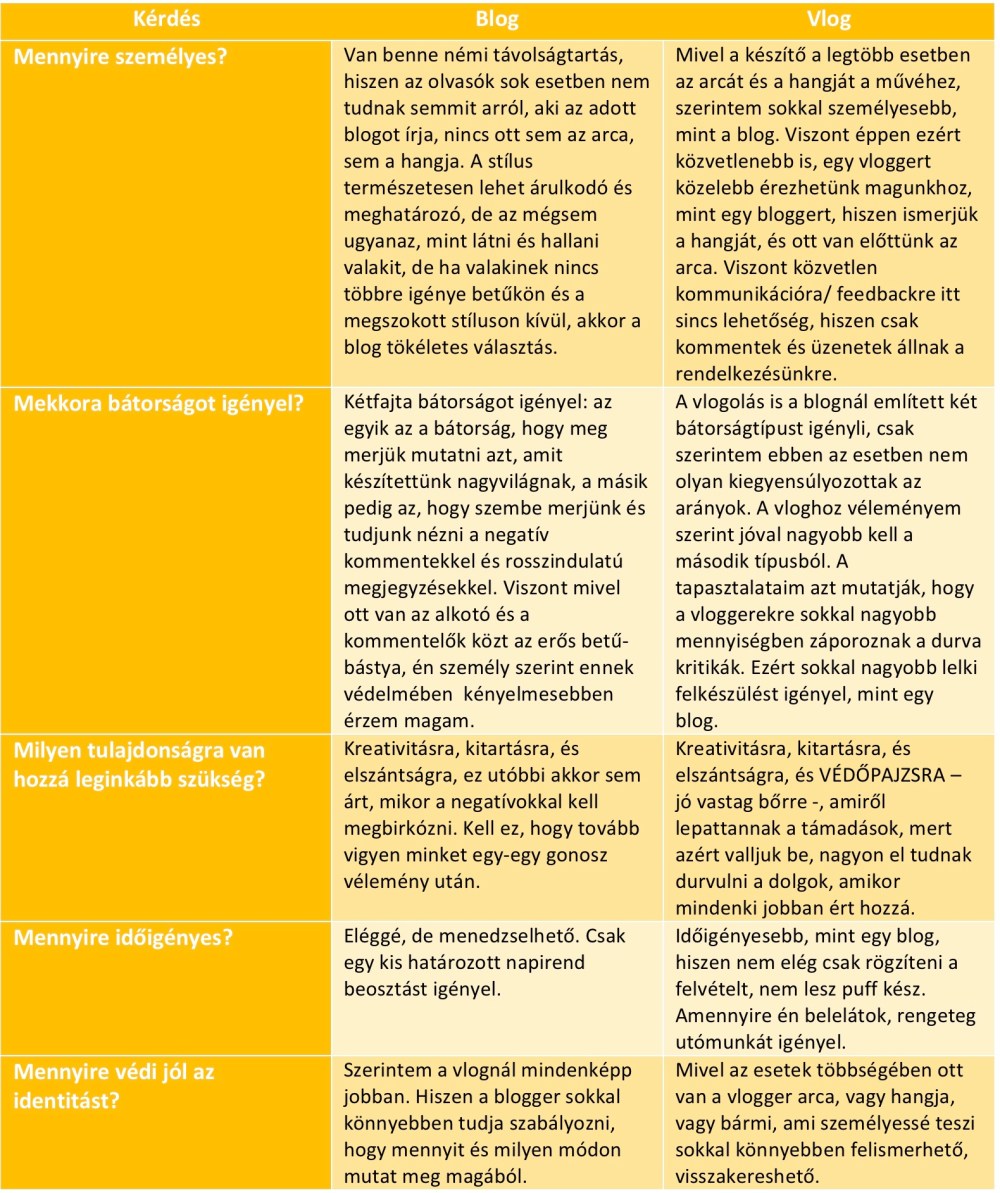 Azt hiszem, a fenti táblázatból azért lehet sejteni, hogy nem tartom magam sem elég elszántnak, sem elég bátornak, hogy valaha is vlogolásba kezdjek. Arról nem is beszélve, hogy bár vannak átfedések a két műfaj között, de azért mégis eléggé eltérnek. Éppen ezért egészen más személyiségtípust is igényel mind a kettő.