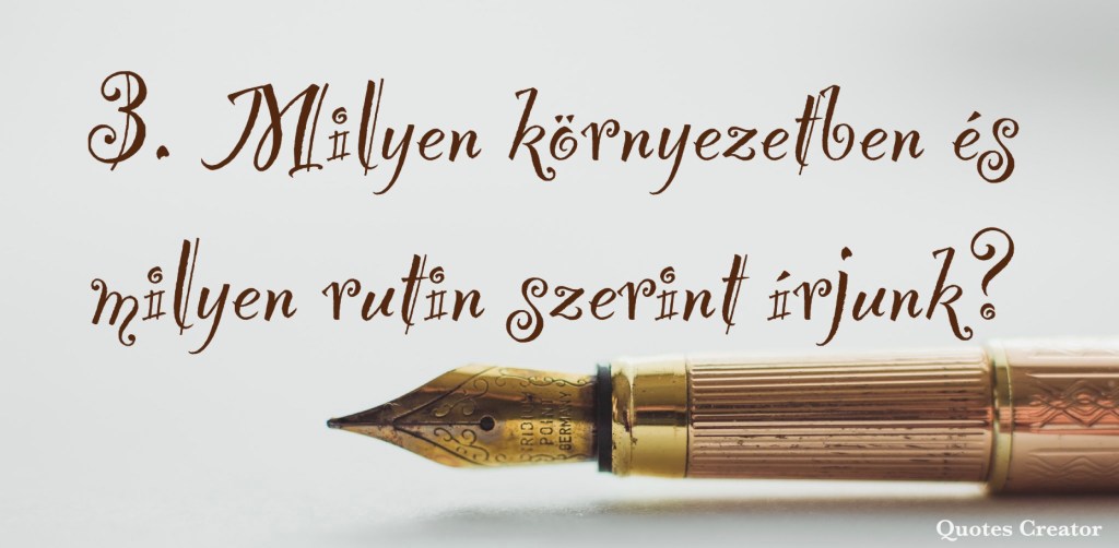 Számomra az írói környezet mind a fizikai, mind a virtuális oldala (vagyis a programok és applikációk, amiket használunk) egyaránt fontos. Otthon például berendeztem magamnak egy írósarkot az ablak mellett, ahol a macska is mellém tud feküdni, ha épp ahhoz van kedve, ahonnan a város más pontjaira látok ki, attól függően, hogy melyik oldalra teszem a széket. És persze az is fontos, hogy körbe tudjam magam bástyázni egy jó nagy bögre kávéval és egyéb innivalóval, esetleg nasival. De szeretek például kávézókban is írni, vannak olyan helyek ahova gyakran visszajárok, bár a vírus miatt az utóbbi időben hanyagolni kényszerültem ezeket.
