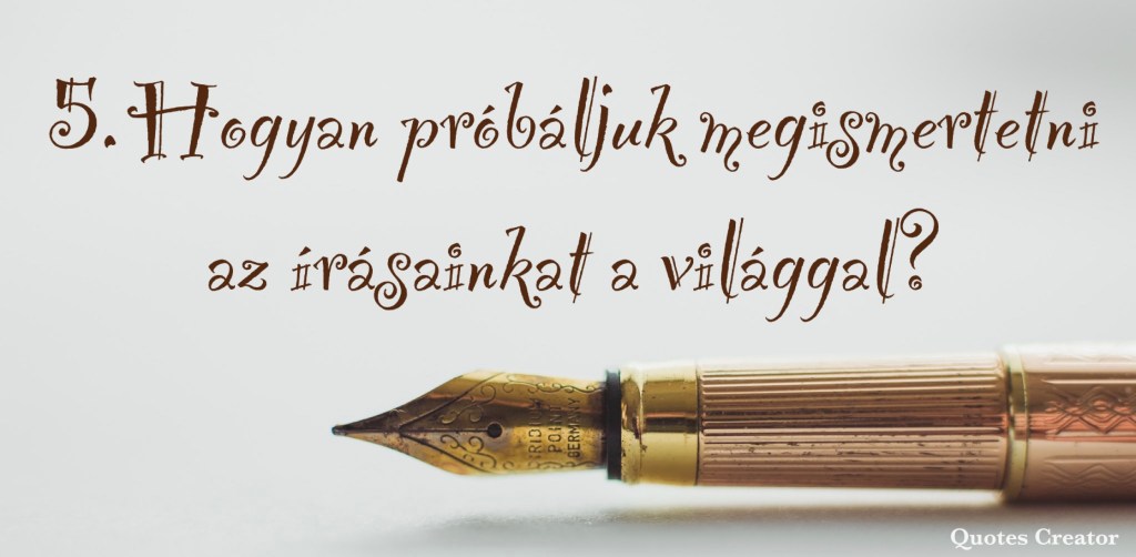 Ha már elkészült a mű, felmerül a kérdés, hogyan is tudjuk eljuttatni a regényünket/történeteinket az olvasókhoz. Jó lehetőség például irodalmi pályázatokra, versenyekre beküldeni az írásokat. Ezeken valószínűleg nem fogunk nyerni eleinte, mármint tapasztalaton kívül mást. Én többször jutottam el döntőkig, de aztán – legtöbbször a témaválasztásom miatt – kiestem a célegyenesben.