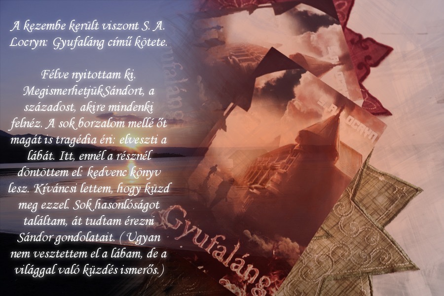 Ma, amikor rákerestem a Gyufalángra – időről időre rá szoktam nézni, hogy milyen boltok árulják, mert szeretem megtalálni mindenféle eldugott kis könyvesboltokban –, az első keresési találatok közt feljött egy blogbejegyzés. Egy olyan lány írta, aki az elsők közt olvasta a Gyufalángot a megjelenés után, és az elsők közt írt is róla a Molyon. Nem tudom, hogy kerülhette el a figyelmemet a blogja, de most elolvastam a bejegyzését, és arra jutottam, hogy nem is gond, hogy korábban lemaradtam róla, mert most kellett ezt látnom. Most volt szükségem erre.