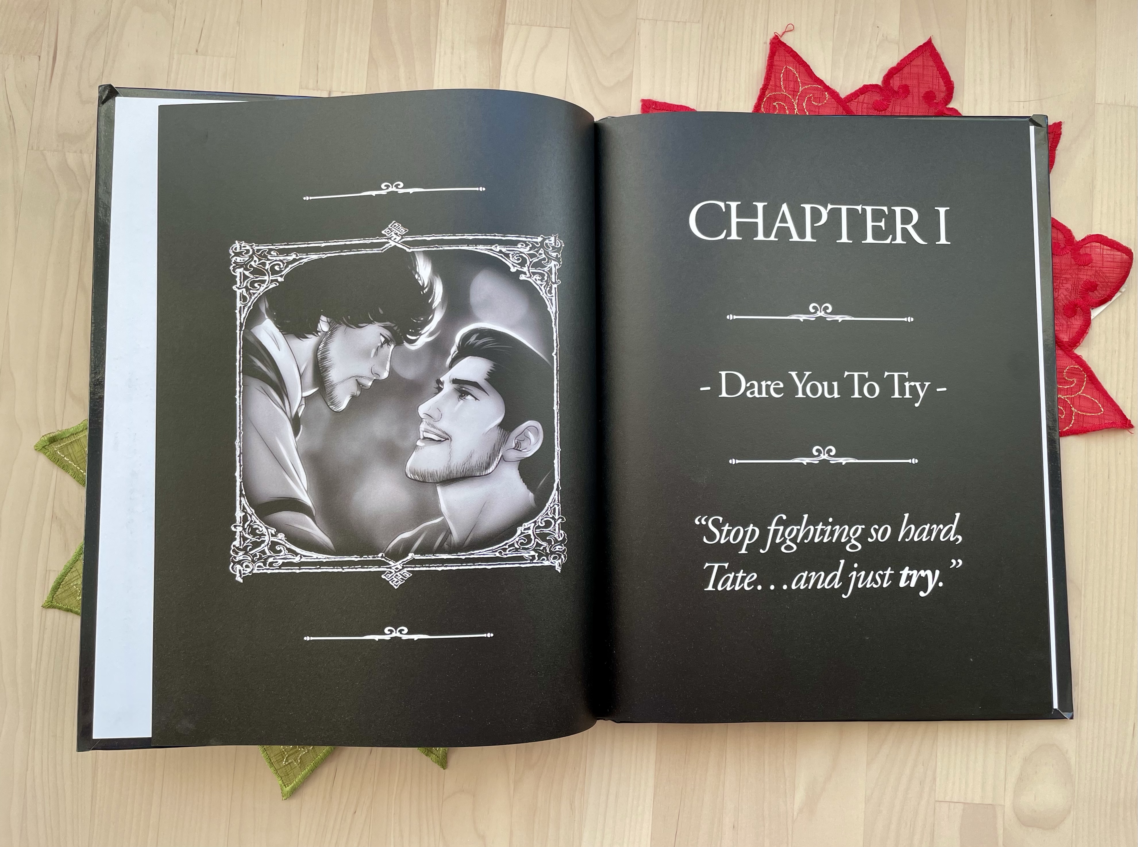 Ami azonnal feltűnik, amint az ember kinyitja és olvasni kezdi a könyvet (már azon kívül, hogy nagyjából egy óra alatt a végére lehet érni), azok a minőségi grafikák. Azt már fentebb említettem, hogy Ella Frank egy rajongója készítette az illusztrációkat, és az is azonnal szembetűnő, hogy milyen szép munkát végzett. A szereplők szinte életre kelnek a lapokon (lent lesz majd pár fotó a könyvből).