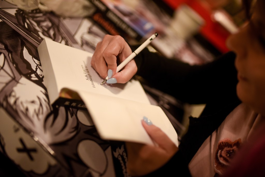Miután ez a beszélgetés véget ért, bárki odajöhetett még hozzám, így több résztvevővel is tudtam pár személyesebb mondatot váltani, aminek kifejezetten örültem. És ezt a beszélgetést kötöttük össze a dedikálással. Annyira jó érzés volt aláírni olyan könyveket is, amiken látszott, hogy sokszor újra olvasták őket, tele voltak jelzőkkel, és látszott, hogy szeretik őket. Azt hiszem, minden író ilyen jó sorsot szeretne a könyveinek. Kifejezetten köszönöm mindenkinek, aki ennyire nagy becsben tartja őket. 🥰