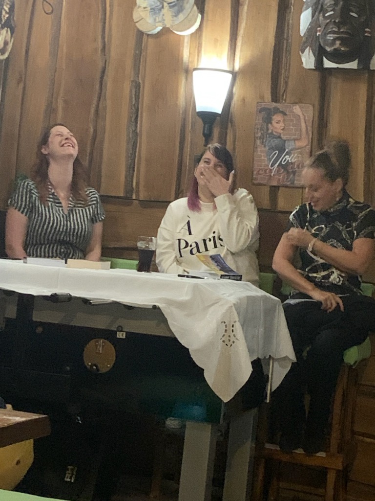 A felolvasás után a budapesti találkozóhoz hasonlóan volt egy beszélgetés, és Kitti megint remelkül moderálta. Pedig állítása szerint hulla fáradt volt, és ezért közel sem volt annyira topon, mint szerette volna. Szerintem ebből egyáltalán semmi sem látszott, meg akkor legalább összepasszolóan voltunk fáradtak. 🤣