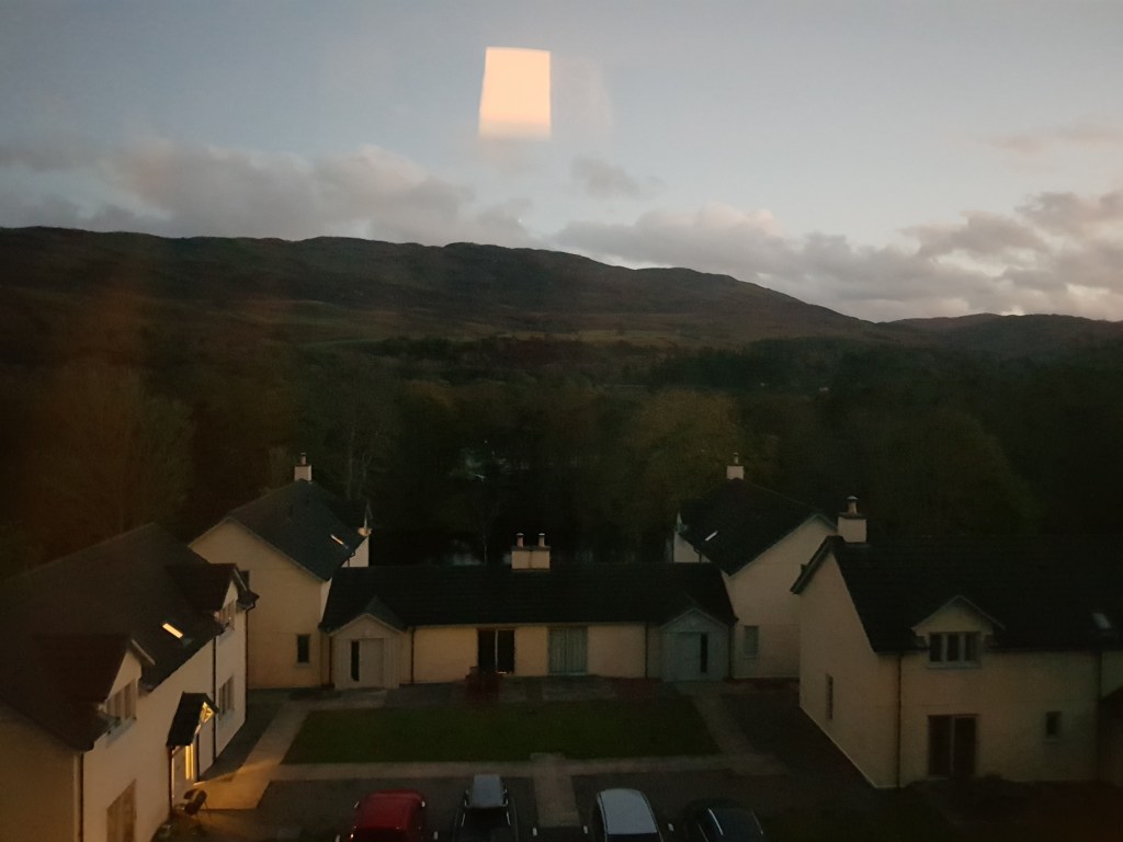 Ahogy már említettem fentebb, a volt apátság egyébként a Loch Ness partjára épült, a lakások egy része a tóra néz. A mi lakásunk az épület komplexum másik oldalán helyezkedett el, így mi nem láttuk a tavat, de a kilátás a skót hegyekre így is elmondhatatlanul szép volt.